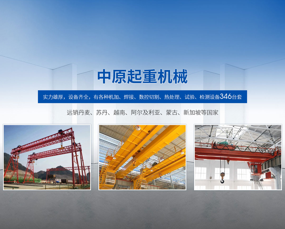 新鄉(xiāng)市中原起重機(jī)械有限公司成立于2000年,地處中原,輻射全國28個(gè)省市自治區(qū),設(shè)外埠經(jīng)銷處、辦事處268個(gè)。產(chǎn)品行銷工礦、建材、化工、冶金、電力、交通、鐵路、油田、港口等各個(gè)行業(yè)。遠(yuǎn)銷丹麥、蘇丹、越南、阿爾及利亞、蒙古、新加坡等國家?! 」緦?shí)力雄厚,設(shè)備齊全,有各種機(jī)加、焊接、數(shù)控切割、熱處理、試驗(yàn)、檢測設(shè)備7臺;有機(jī)加工、熱處理、單、雙梁橋門機(jī)生產(chǎn)、檢測、安裝等9個(gè)車間,研究中心、運(yùn)輸公司、安裝維修服務(wù)公司等機(jī)構(gòu),?  主要產(chǎn)品有:LD型1~20噸電動單梁起重機(jī)系列產(chǎn)品;5~600噸通用橋式、門式、冶金、上旋轉(zhuǎn)下旋轉(zhuǎn)電磁吊、絕緣、抓斗、防爆起重機(jī)系列產(chǎn)品;LH3~100噸葫蘆雙梁系列產(chǎn)品;MH5~32噸葫蘆門式系列產(chǎn)品;0.5~40噸CD1、MD1鋼絲繩電葫蘆系列產(chǎn)品;HS1型0.5~20噸手動葫蘆系列產(chǎn)品;0.5~10噸環(huán)鏈電動葫蘆系列;0.5~40噸彎道電動葫蘆系列產(chǎn)品;裝卸橋、造船門機(jī)、架橋機(jī)、鑄造吊和水電大噸位起重機(jī)系列產(chǎn)品?! 」窘⒘藦?qiáng)有力的質(zhì)量保證體系和生產(chǎn)過程的質(zhì)量控制系統(tǒng),嚴(yán)格執(zhí)行國家設(shè)計(jì)、生產(chǎn)標(biāo)準(zhǔn),有嚴(yán)格的生產(chǎn)工藝過程和標(biāo)準(zhǔn),嚴(yán)格的檢驗(yàn)、檢測標(biāo)準(zhǔn)和手段。
